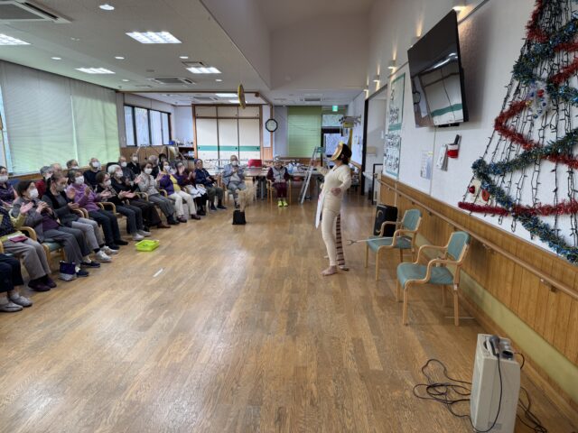 玄関やフロアもクリスマスツリーの飾り付けとイルミネーション✨で華やかに装飾され、利用者様からは「わぁ、きれいだね」「もうそんな季節かぁ早いね」と、たくさんの笑顔が見られました😊