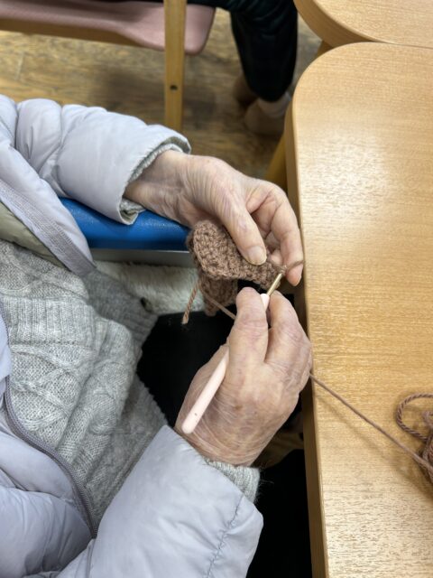 一目一目、丁寧に編み進められる指先の動きは、長年培われてきた熟練の技を感じさせます。出来上がっていく作品には、その方の人柄が表れるような優しさが詰まっています。